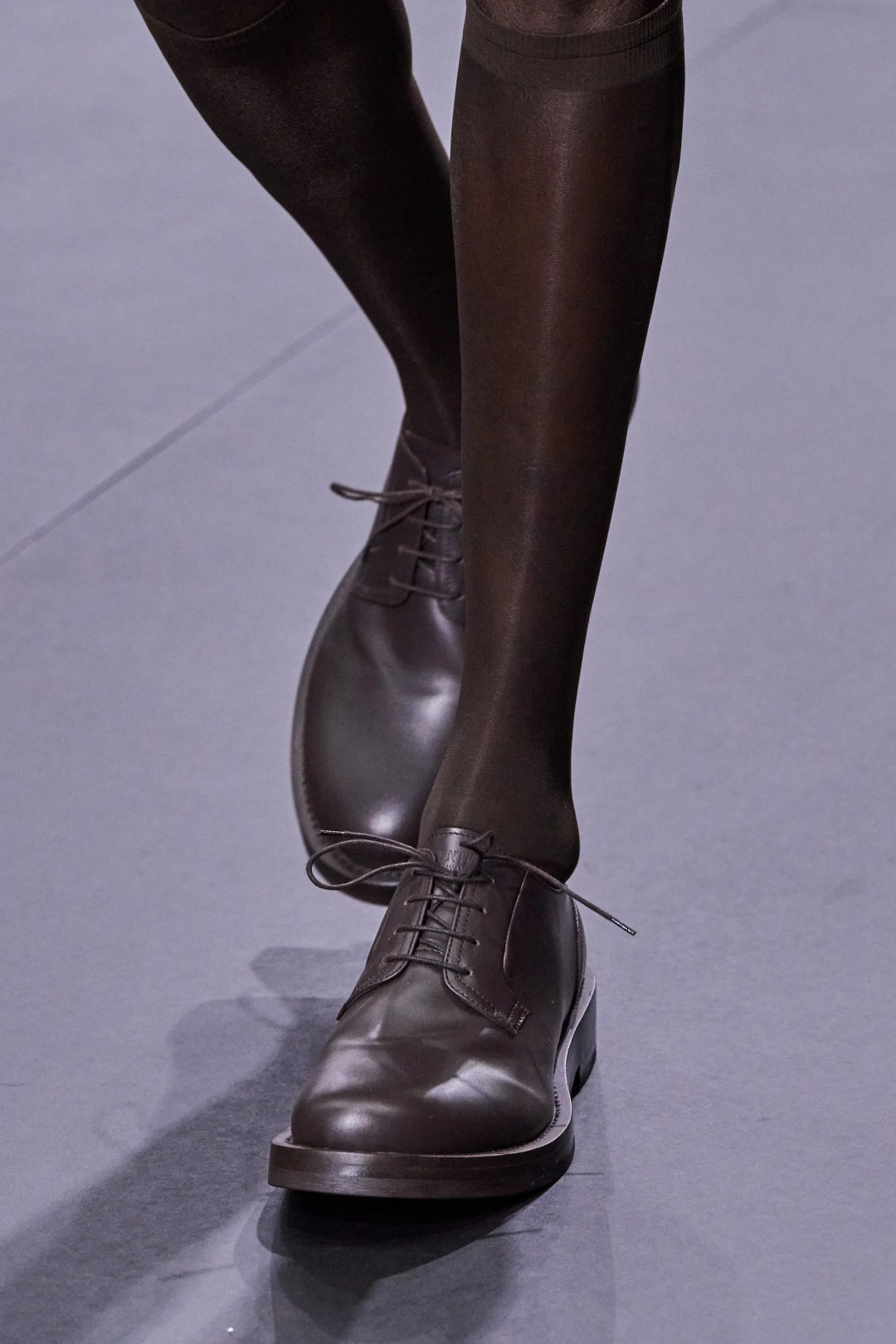 此次女装系列中亦出现了男装鞋履系列里的STUD德比鞋,搭配透明丝袜多了几分俏皮感,是打破性别规范的尝试。 本次的妆造也十分特别。VLOGO SIGNATURE从服装、包袋、鞋履一路延伸到脖颈和面部,在戏剧感的呈现中将当代风格推演到极致。 留白,意味着无尽的书写。 纯粹而真诚的设计能化繁为简, 为日常衣服赋予惊奇之美的力量。 这也意味着Valentino对既定规范的打破: 繁简、性别、古今…… 解放一种既定的印象也意味着解放一种思想。 Valentino用华美又极简的话语, 试图传达名为“纯粹”的哲学。 在框架之外, 才能看到设计的本质。