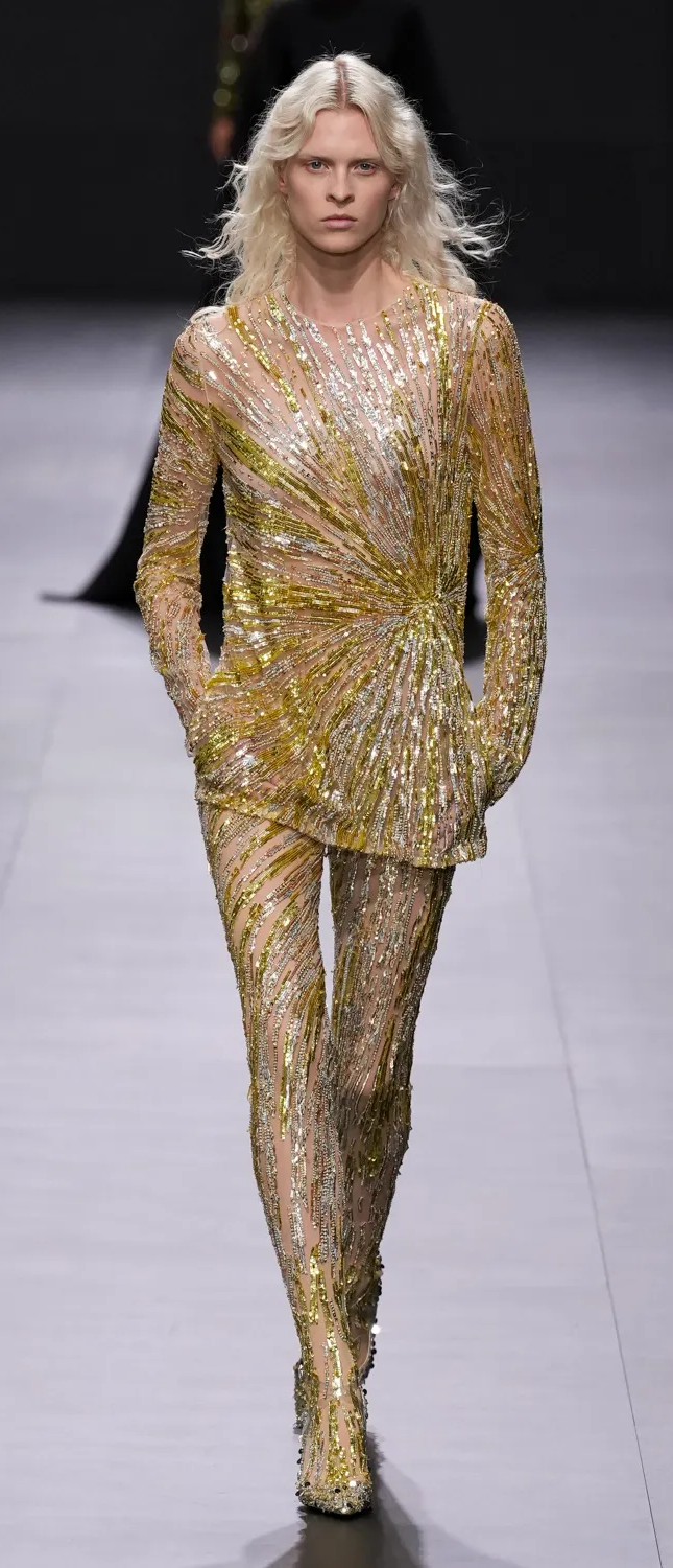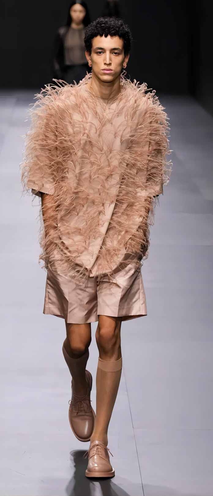 高定是用超越寻常时空的美感来造梦,当它落入日常又会发生什么奇妙反应?本季Valentino继续将高定话语融入成衣设计,打通礼服与日常着装的边界,解放既定的印象。 流苏、羽毛和金线等都是十分熟悉且经典的Valentino高定元素。当标志性的“仙女裙”与休闲套装、西服、风衣等结合,便在破坏规范的同时,让日常着装也拥有了浪漫如童话的可能。